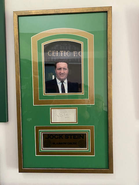 Big Jock signed his autograph as a Celtic player ‘John Stein,’ I wanted to highlight his career as a Celtic player, then manager, that autograph as a manager will follow along later with his Scottish League Championship medal, his last League title, the tenth…
