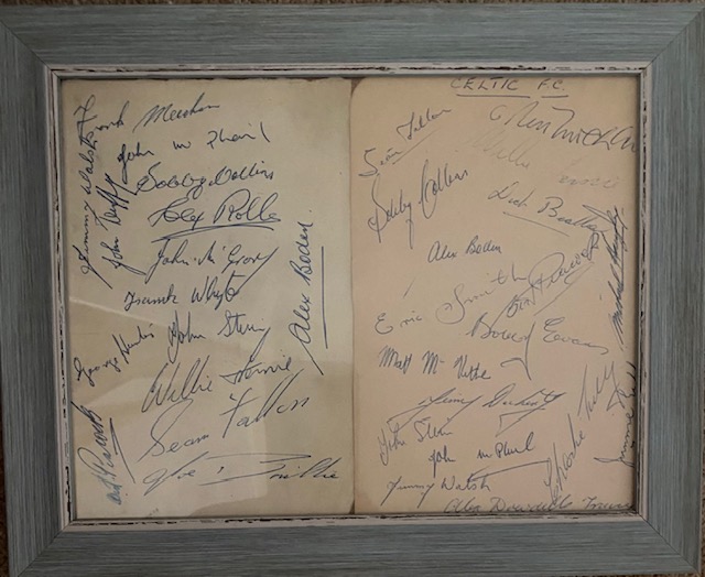 Jock Stein’s autograph along with Jimmy Gribben and the Celtic players of the 1950s.