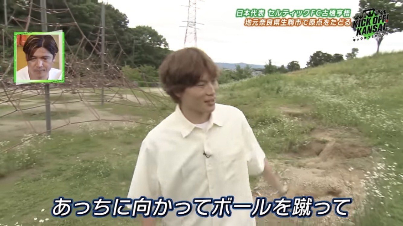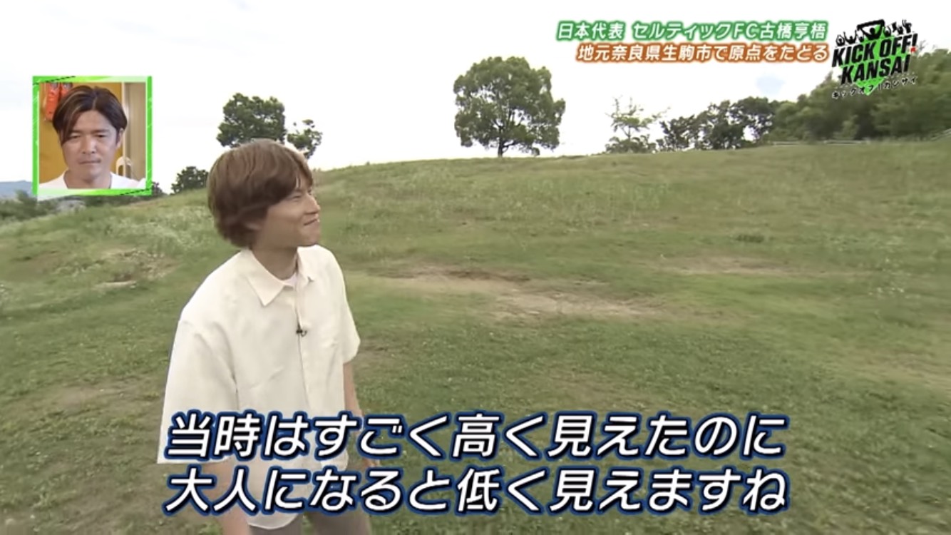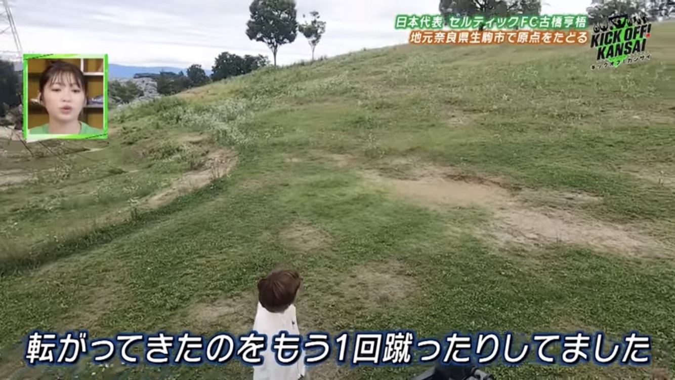 The first place Kyogo visited was “Imoyama Park”, in Ikoma City, Nara Prefecture. It seems that he often kicked the ball on the hill in the park when he was in elementary school. He seems to have enjoyed playing football on holidays by kicking the ball up to the top of the hill many times there.