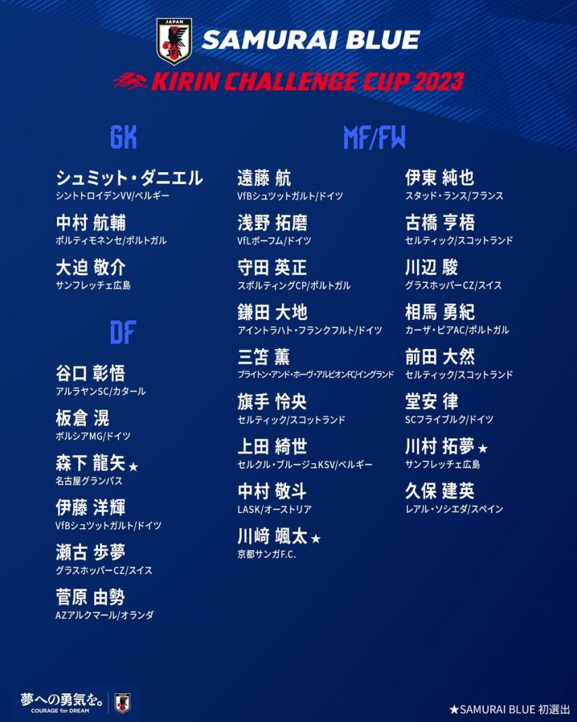 At 2pm on 25 May, JFA (Japan Football Association) announced the squad for the  Kirin Challenge Cup to be held in June. They will play against El Salvador on 15 June and Peru on 20 June and his time three Celtic players, Kyogo Furuhashi, Reo Hatate, and Daizen Maeda were called up to Japanese national team.