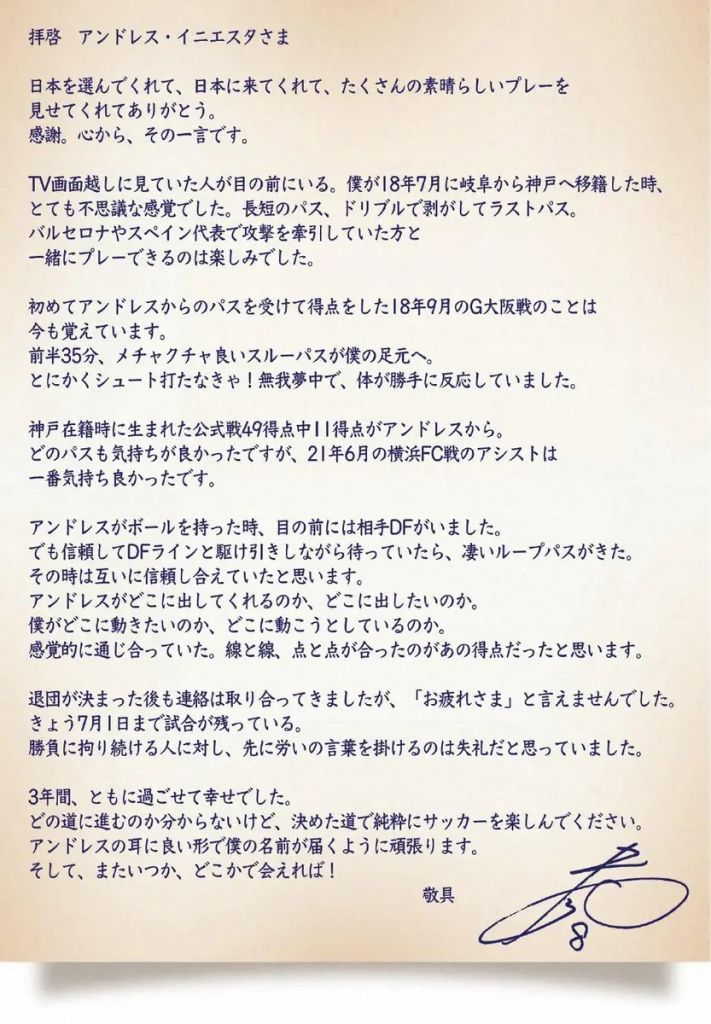 This is a letter sent to Andres Iniesta by Kyogo Furuhashi released by the Japanese media today. I will share the full text in this article as follows…