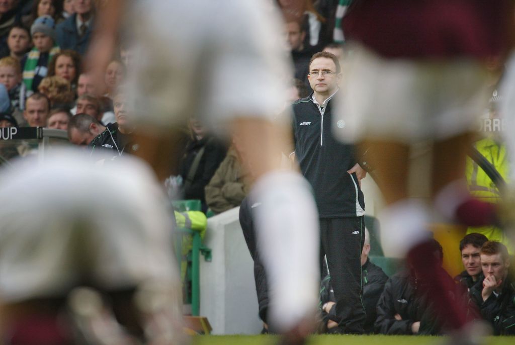Celtic’s manager Martin O’Neill at the match between Celtic and Hearts at Celtic Park on April 3, 2004 i (Photo by Christopher Furlong/Getty Images)