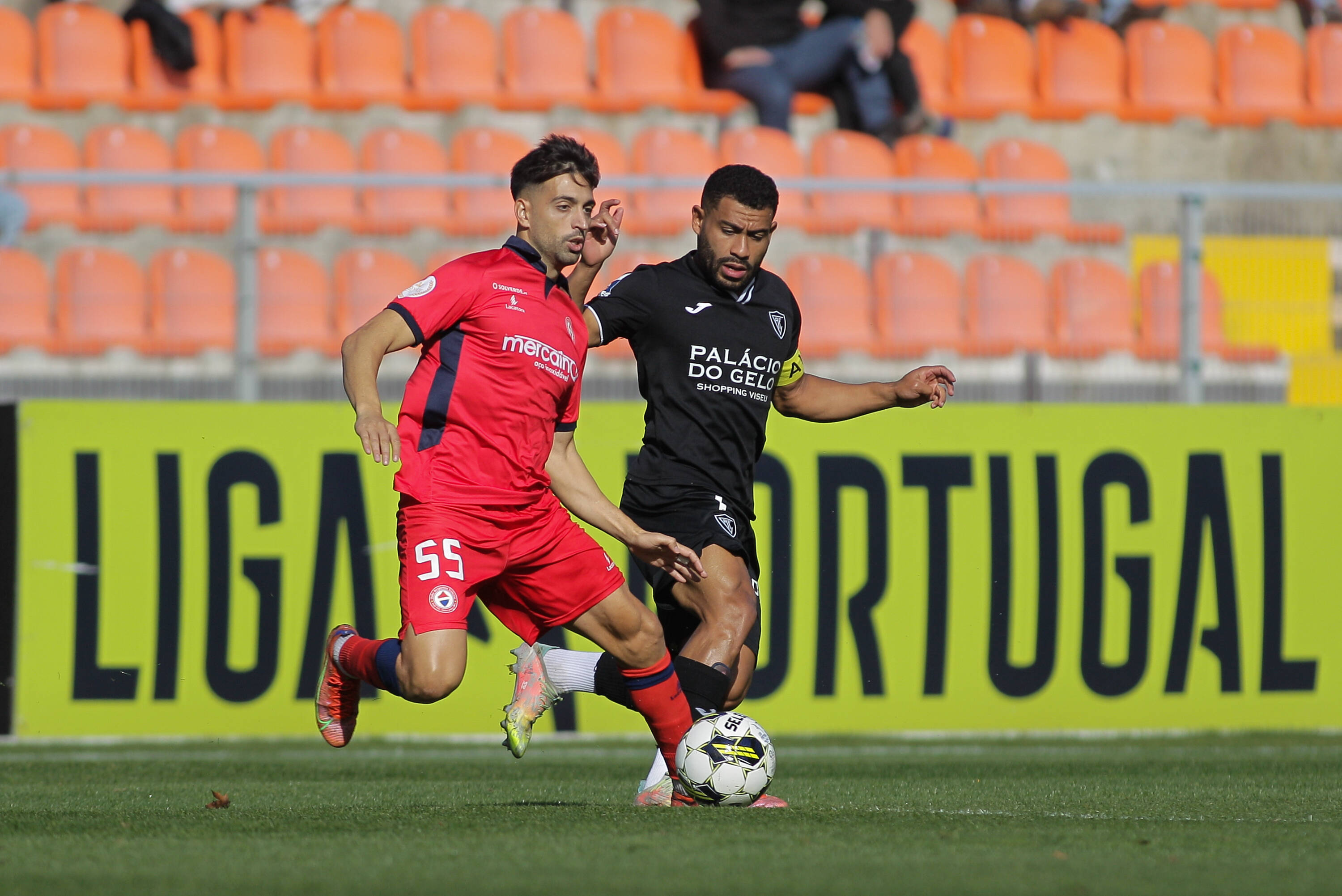 FOOTBALL – Academico de Viseu 3 vs Trofense 1, round 13 match of Liga 2, portuguese second league, 2022 2023. Estadio Fontelo, in Viseu, Portugal. Sunday, November, 13th 2022. Tiago Andr 55,Trofense, Yuri Arajo 07 Acadmico de Viseu. VISEU VISEU PORTUGAL FONTELO STADIUM Photo: GIL PERES