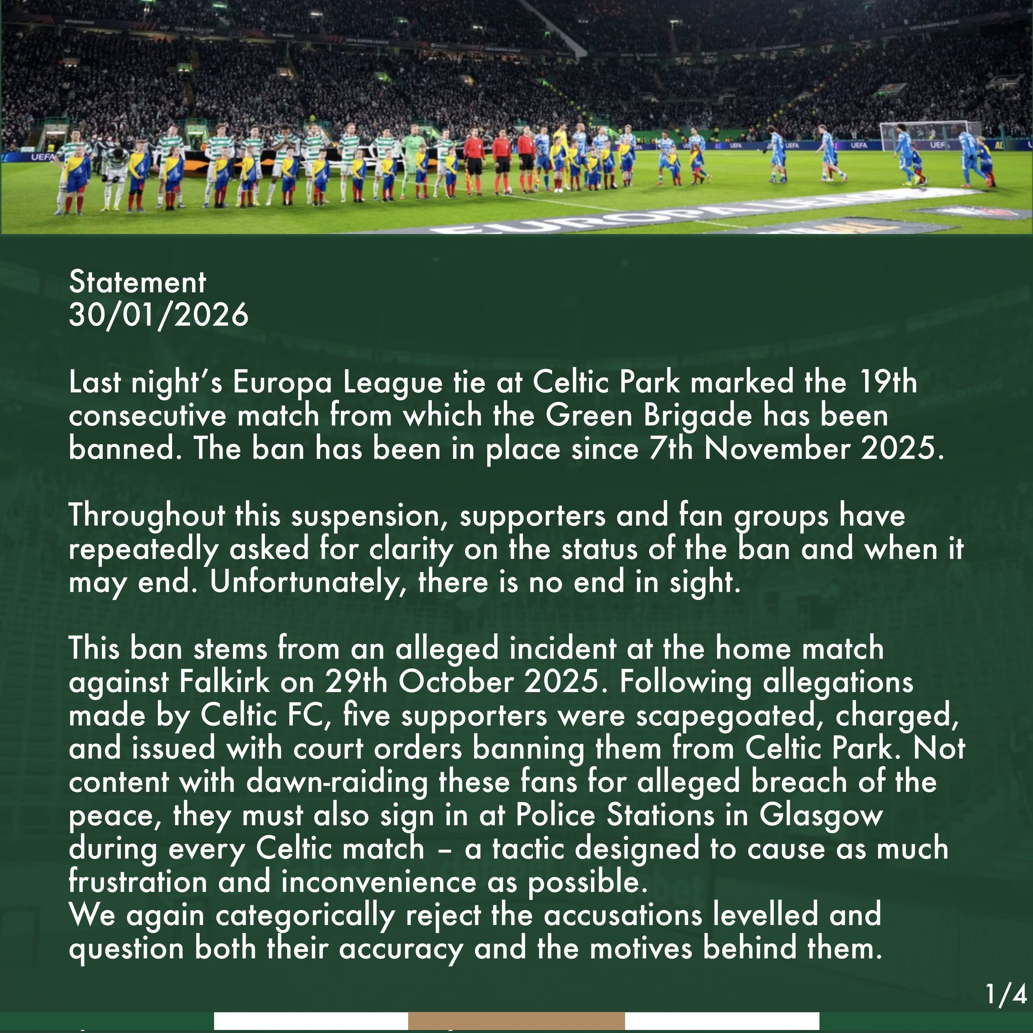 Please have a read at the Green Brigade’s lengthy statement issued today the night after Celtic qualified for the Europa League play-off rounds where we will play VfB Stuttgart…