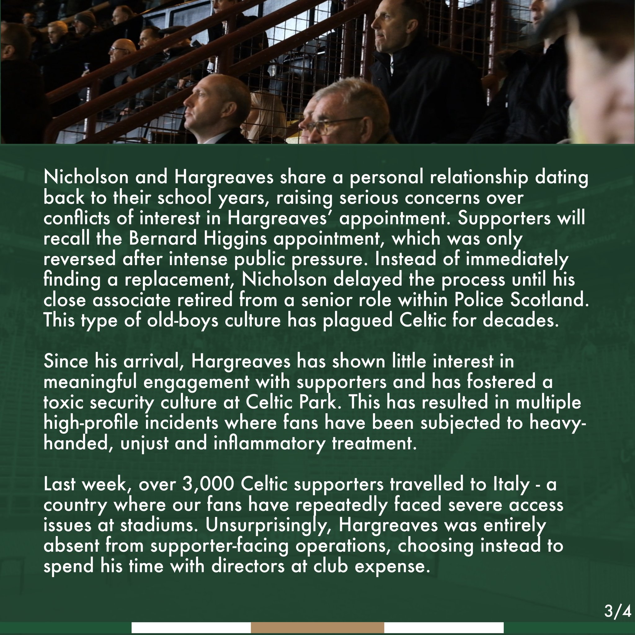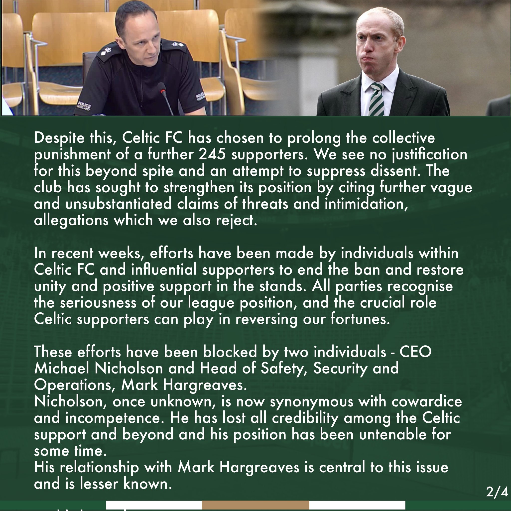 Therefore the collective punishment that the club has additionally imposed on over 200 other supporters doesn’t stand up to scrutiny other than to say it’s both vindictive and petty minded from a Celtic CEO whit is clearly way out of his depth.