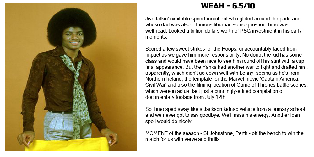 Sandman’s appraisal of Weah Burke and Toljan are below and if you didn’t catch Sandman’s Season Review first time around you can catch up over on Celtic Noise HERE.