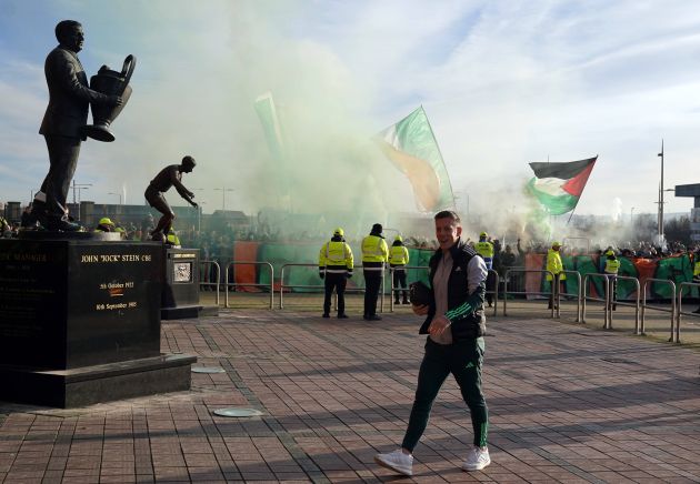 Celtic v Motherwell – Callum McGregor arrives as The Green Brigade set off flares ahead of the cinch Premiership match at Celtic Park, Saturday November 25, 2023. Photo Andrew Milligan
