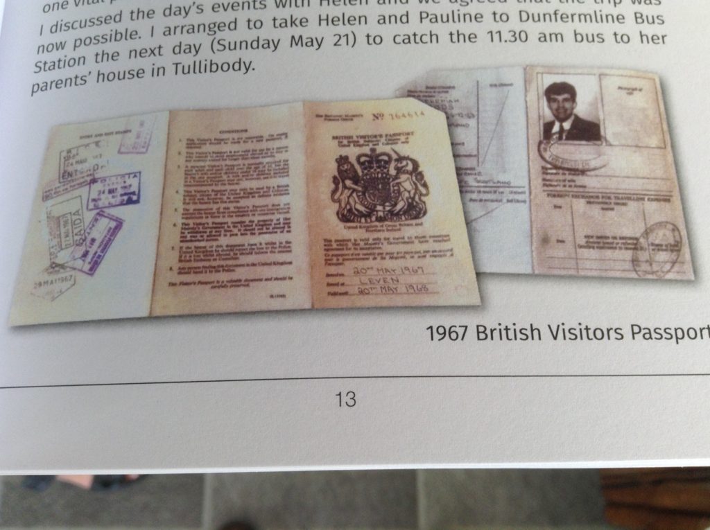 Now with my photos in hand, I arranged to meet Danny the next day (Saturday 20 May) about 8.30 am at his house to attempt to get a one year visitor’s passport at the “Buroo” in Leven. In 1967, it was possible to get a passport at your local Labour Exchange now called the Job Centre (or in 1967 speak the “Buroo”) and they opened on Saturday till noon. All that was required to get this type of “Paper” Visitor’s Passport was your Birth Certificate, a recent photograph and the payment.
