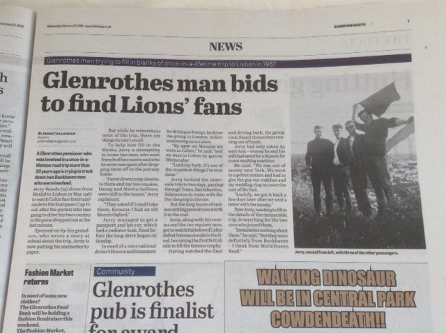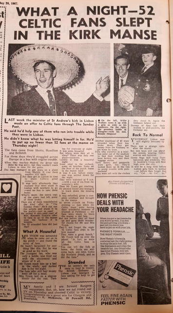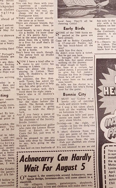 The week before the Lisbon trip – the Sunday Post had a story about a Lisbon Church of Scotland minister called the Rev Kenneth Tyson who wrote that anyone requiring help was to get in touch.