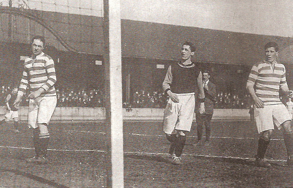 Celtic v Newcastle United, Paris, May 1921. Willie McStay in action with Alec McNair in the background.