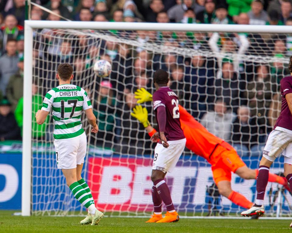 Then Scotty Sinclair got his second penalty conversation on 31 minutes after Craig Gordon started the move by nutmegging a Dundee forward. The award looked soft though as Mikael Lustig looked to go down a little bit too easily. Let’s put it this way, we’d have been angry if that had been awarded against us.