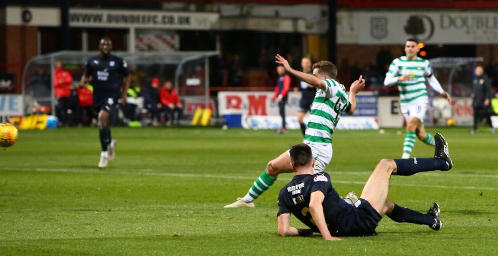 Five star Celtic hit Jim McIntyre’s rock bottom Dundee side for five this evening and went back ito the dressing room to discover that Hearts had dropped points at home to Hibs (0-0) and Kilmarnock dropped two points at Ibrox (1-1). And it was five different goalscorers for Brendan Rodgers’ side with Tom Rogic starting the party with a stunning opening goal on the 19th minute.