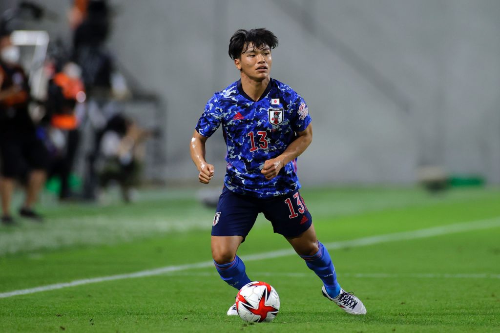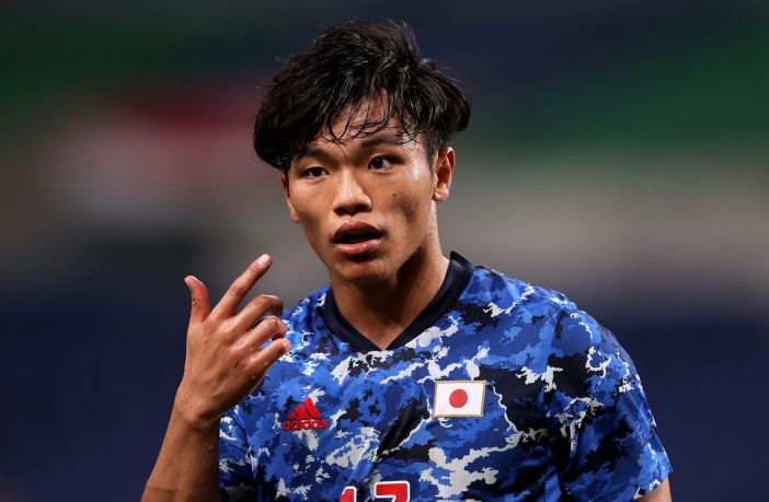 Reo Hatate of Japan in action during the U-24 international friendly match between Japan and Spain at the Noevir Stadium Kobe on July 17, 2021 in kobe, Hyogo, Japan. (Photo by Koki Nagahama/Getty Images)