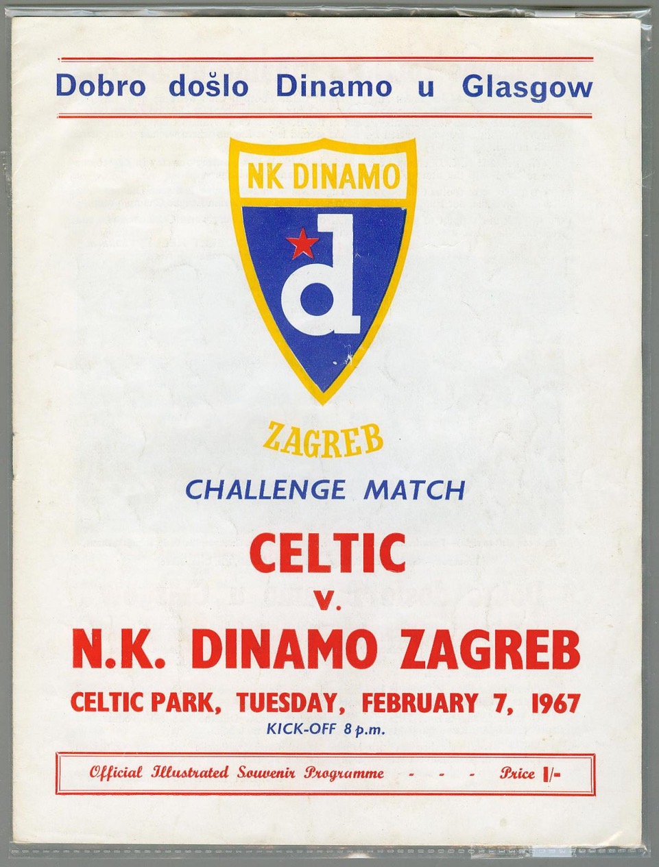 Davie’s second appearance in the first team came along on Tuesday, 7 February 1967 and was a bit unique as Jock Stein tried an experimental 3-4-3 formation for the challenge match with Yugoslavs Dinamo Zagreb at Celtic Park. This was arranged ahead of the European Cup quarter-final with Yugoslav champions Vojvodina Novi Sad the following month. Davie played on the right of a three-man defensive line with Billy McNeill and John Clark, the Hoops going down to a late Zambata goal despite performing well on the night before 46,000 spectators.