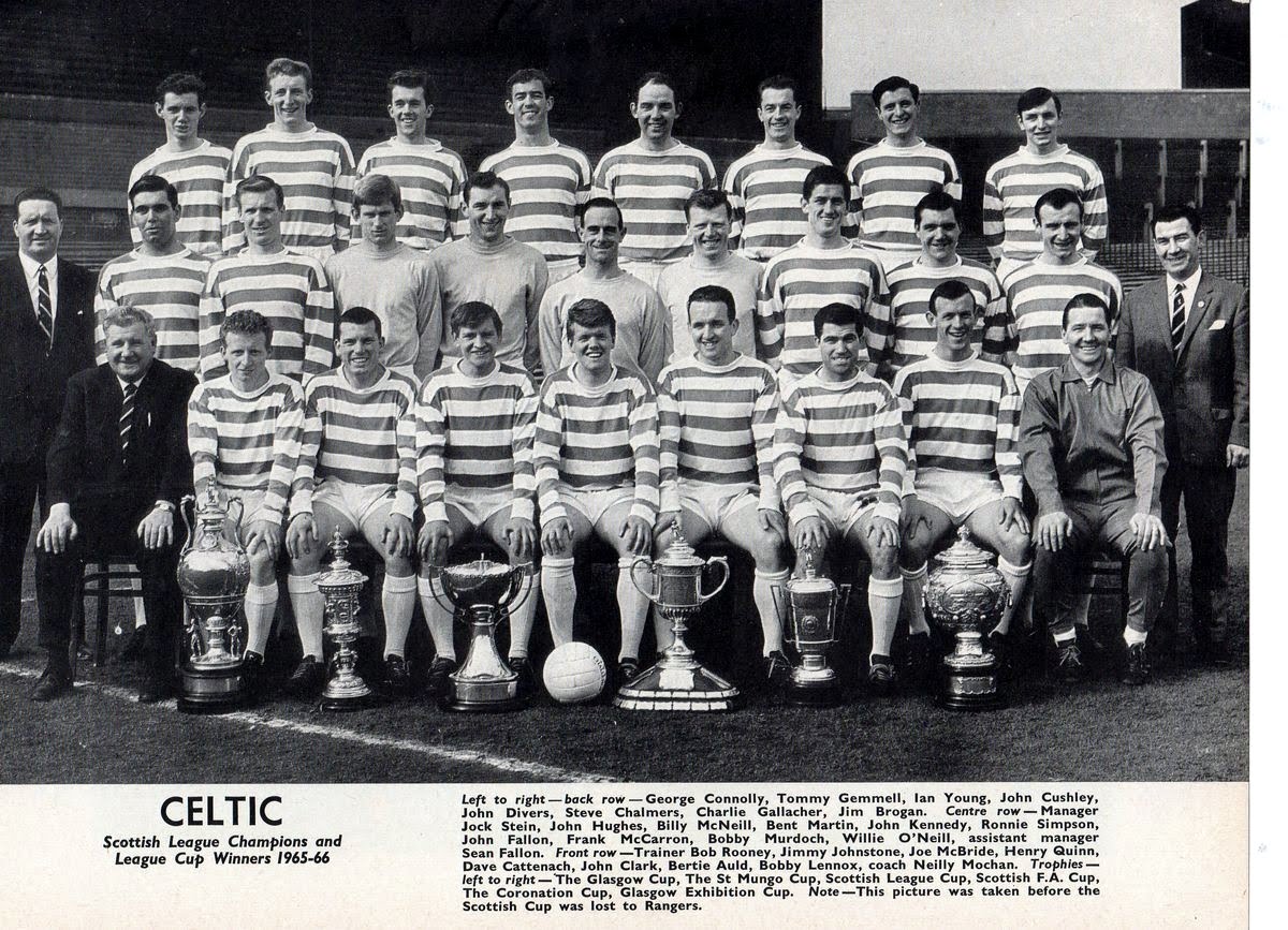 Tom Lally; Pat McCluskey & Jimmy Quinn; Bobby Murdoch, Tommy Gemmell & John Clark;