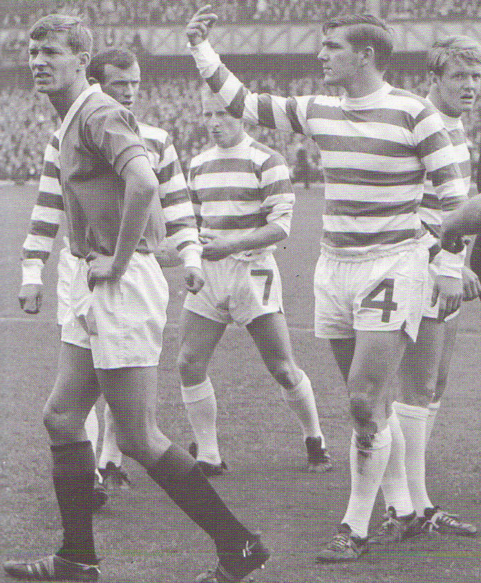 He would be back on the bench seven days later as Jim Craig returned at right- back, Davie replacing the injured Pat McMahon with 10-man Celts trailing to an Alex MacDonald goal in the League clash with St Johnstone at Celtic Park on Saturday, 23 September 1967. Jimmy Johnstone had been sent off for retaliation before the interval, but a late Bobby Murdoch strike rescued a point as the match ended in a 1-1 draw.