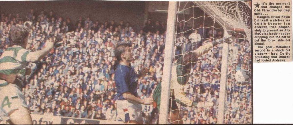 The moment which would define Ian Andrews’ career came along early in the second-half, the big keeper misjudging a McCoist header for a soft third. Kevin Drinkell nodded a fourth before a Roy Aitken slip set up Mark Walters for 5-1, as we witnessed Celtic’s worst defeat in this derby fixture since 1960.
