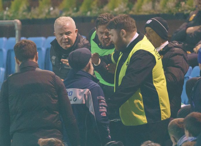 So if you look at the pictures or study any TV footage above there is ZERO evidence at all of ‘an object’ (copyright, Daily Record, via deleted tweet) hitting Uncle Albert or any other Kilmarnock supporter. There is also no evidence on any Kilie fans standing next to the bin, the nearest one is well back from this.