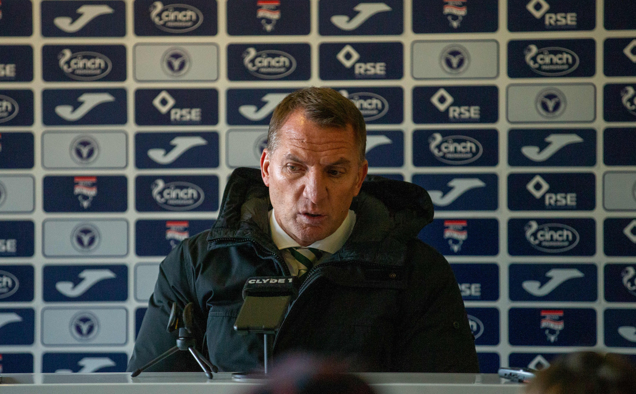 Yesterday Brendan Rodgers wasn’t interested in discussing with The Celtic Star the booking Kyogo received on Wednesday night nor the clear block and forceful throwing to the ground of the Celtic striker but today he was more than willing to question the latest peculiar interpretation of the rules of the game after two Celtic goals were wrongly ruled out today and two penalties were denied for clear jersey pulling.
