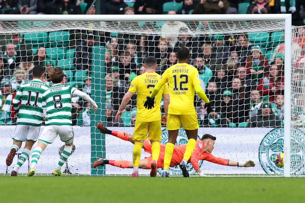Brian Schwake of Greenock Morton fails to stop a goal scored by David Turnbull (not pictured) of Celtic, his team’s third goal during the Scottish Cup Fourth Round match between Celtic and Greenock Morton at Celtic Park Stadium on January 21, 2023. (Photo by Ian MacNicol/Getty Images)