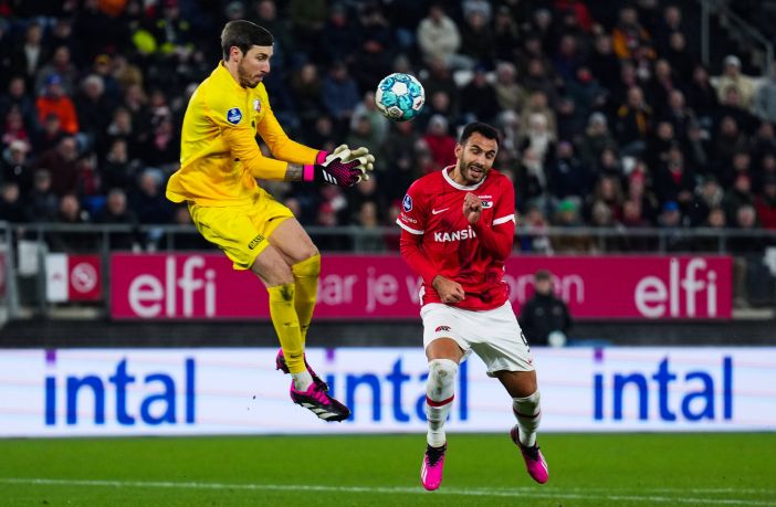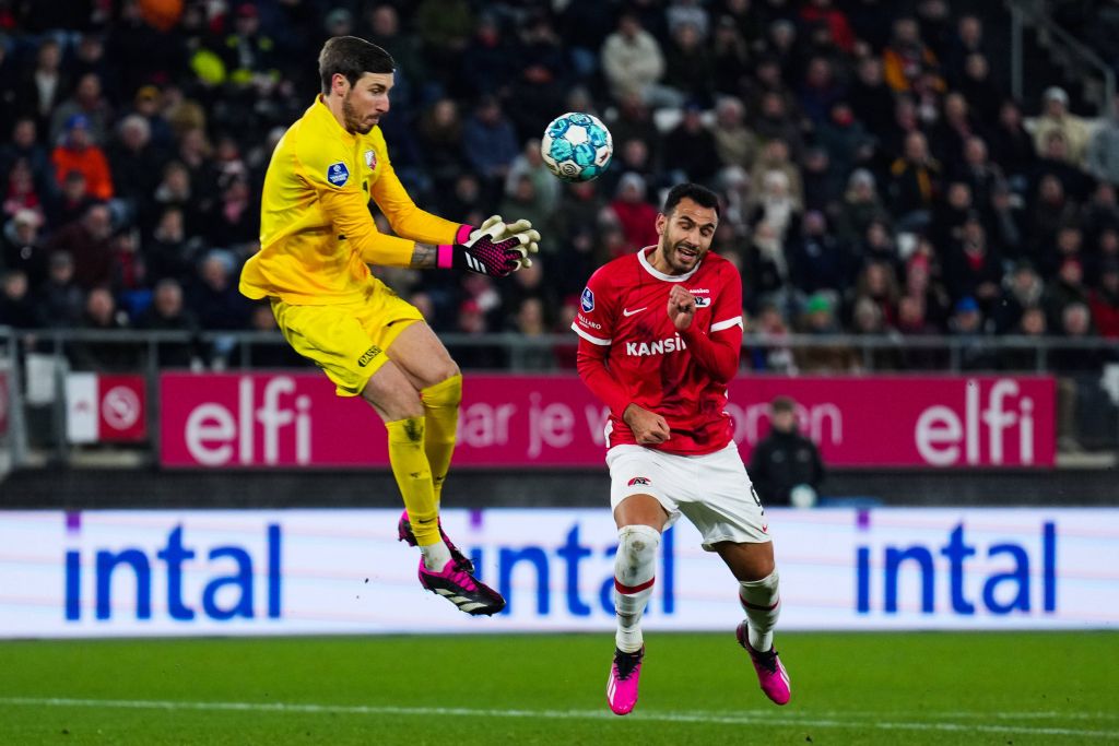 FC Utrecht goalkeeper Vasilis Barkas, Vangelis Pavlidis or AZ Alkmaar during the round of 16 of the TOTO KNVB Cup between AZ Alkmaar and FC Utrecht at AFAS stadium on February 7, 2023 in Alkmaar, Netherlands ANP ED VAN DE POL Dutch Cup round of 16 2022 2023 VI ANP Sport
