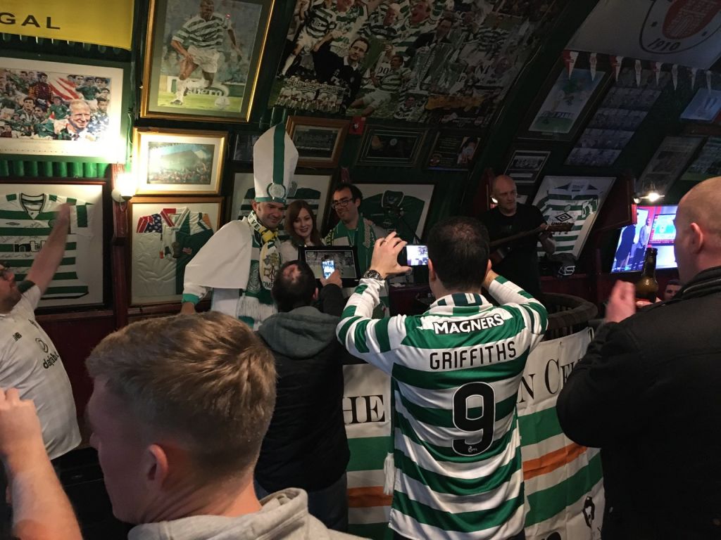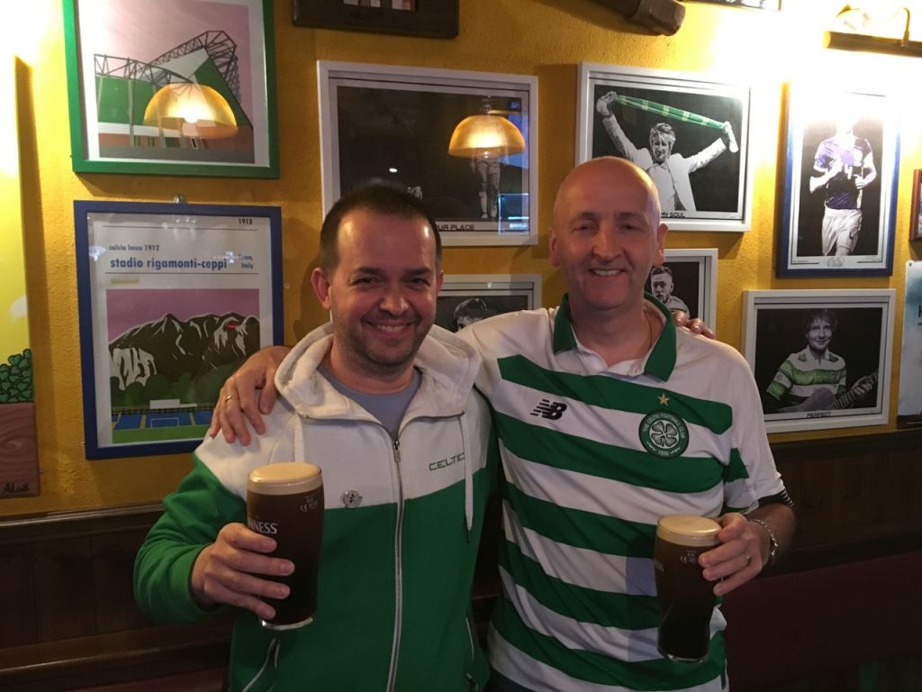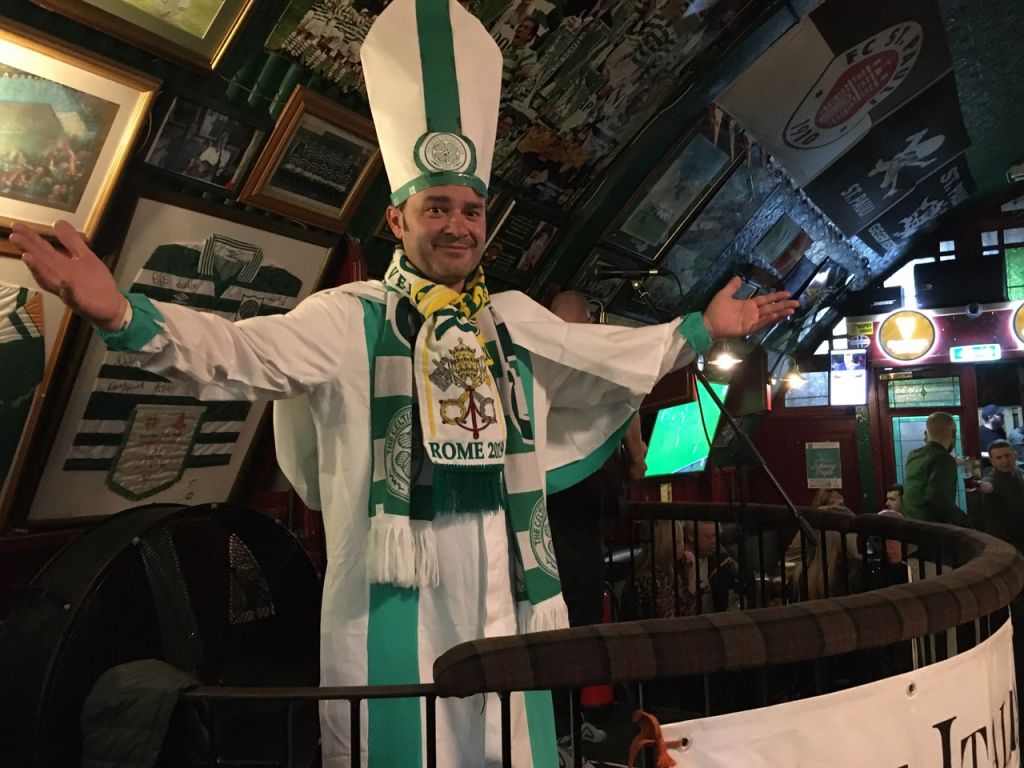 I immediately think of the Italian Celts, a group of friends I first met last April when three of them turned up for the stadium tour of Celtic Park, 24 hours after French Eddie and Prestwick Jamesie had scored to win the latest Glasgow derby for the Hoops. We seemed to hit it off immediately, the guys showing me photos of Federico’s guest appearance the previous day dressed as the Italian Pope. I’m sure that went down well in the quiet corner of the ground.