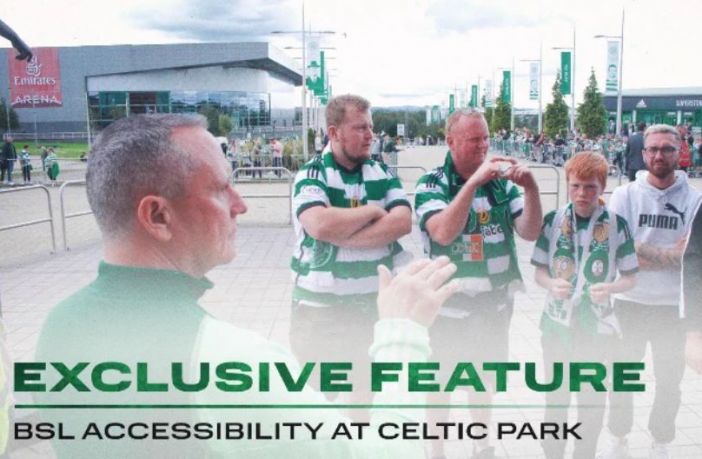 The Celtic YouTube page has uploaded a video showing the introduction of the BSL interpreter that will support deaf or deaf and blind Celtic fans on match days.