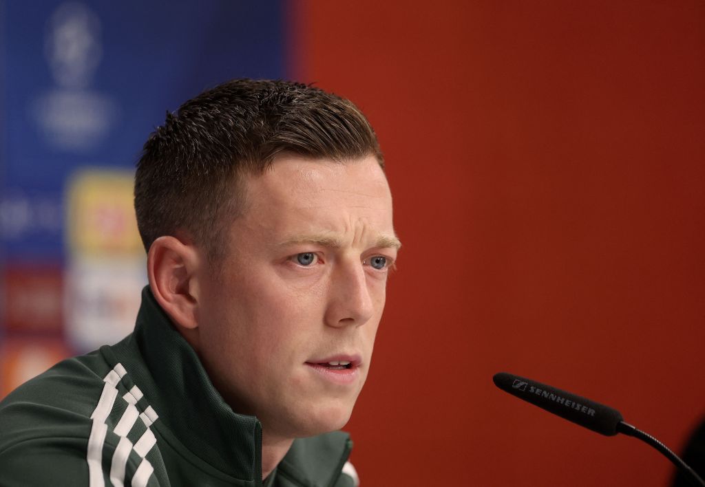 Celtic’s Scottish midfielder Callum McGregor attends a press conference on the eve of the UEFA Champions League day 3 Group F football match between RB Leipzig and Celtic FC, at the Red Bull Arena in Leipzig on October 4, 2022. (Photo by RONNY HARTMANN/AFP via Getty Images)