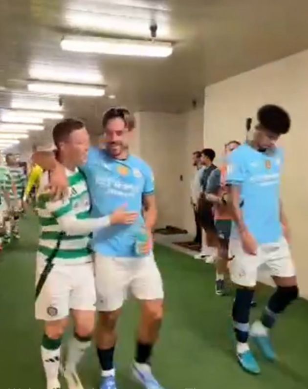 Celtic captain Callum McGregor shared a brilliant moment with Manchester City’s Jack Grealish before the teams met in North Carolina on Wednesday. The Scottish Champions beat their English counterparts 4-3 in Chapel Hill with goals from Nicolas Kühn (x2), Kyogo and Luis Palma sealing victory over Pep Guardiola’s side.
