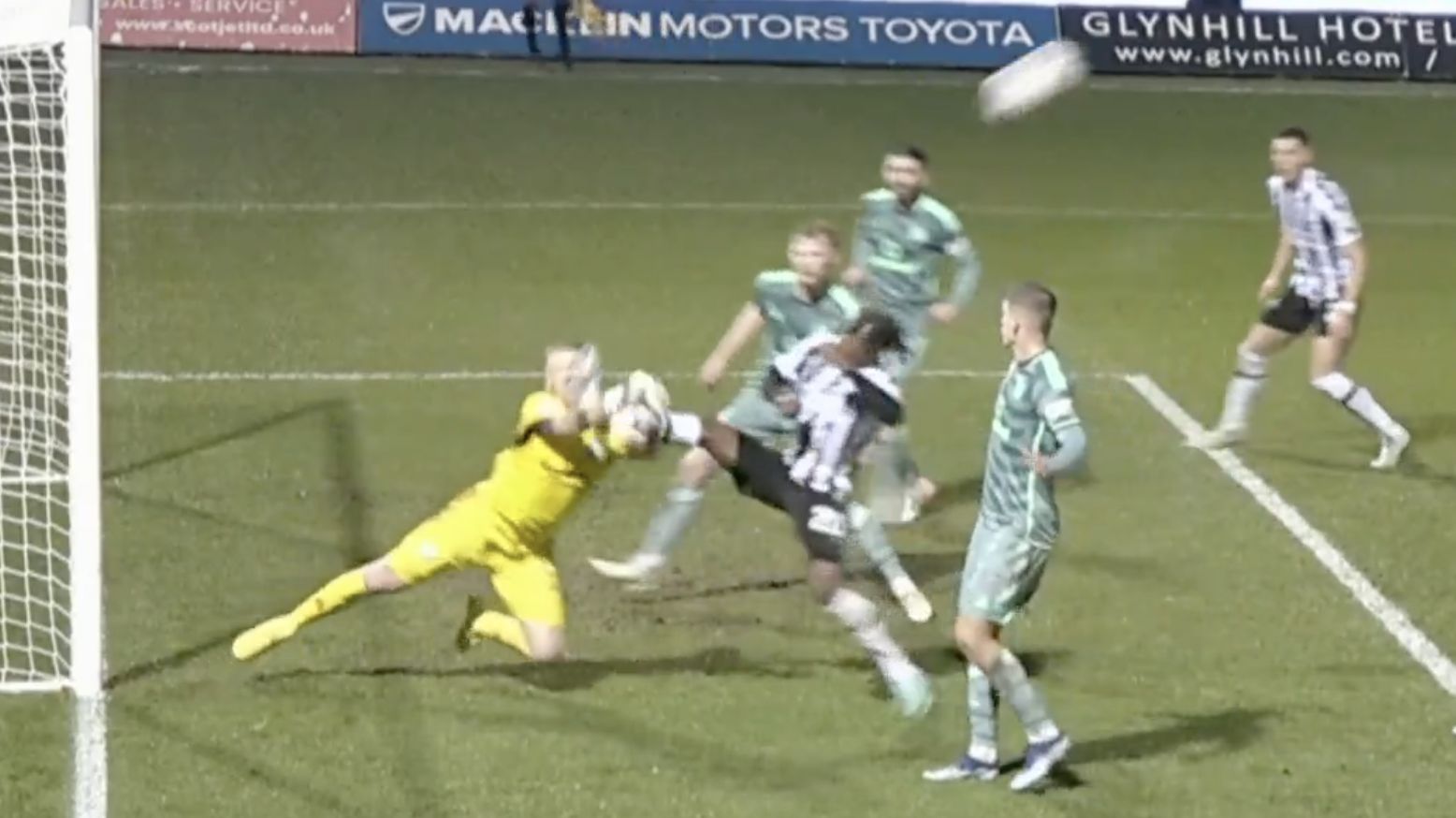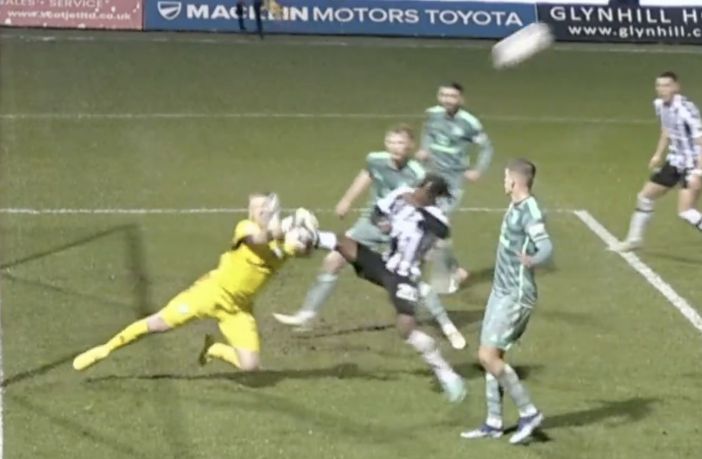 David Munro initially blew up for a foul and booked Olusanya but Steven McLean on VAR directed Munro to review the pitch side monitor and reassess the situation. Replays showed that the 26-year-old had gone into the challenge with his studs up and at the head height of the Celtic goalkeeper, who was brave to punch the ball clear.