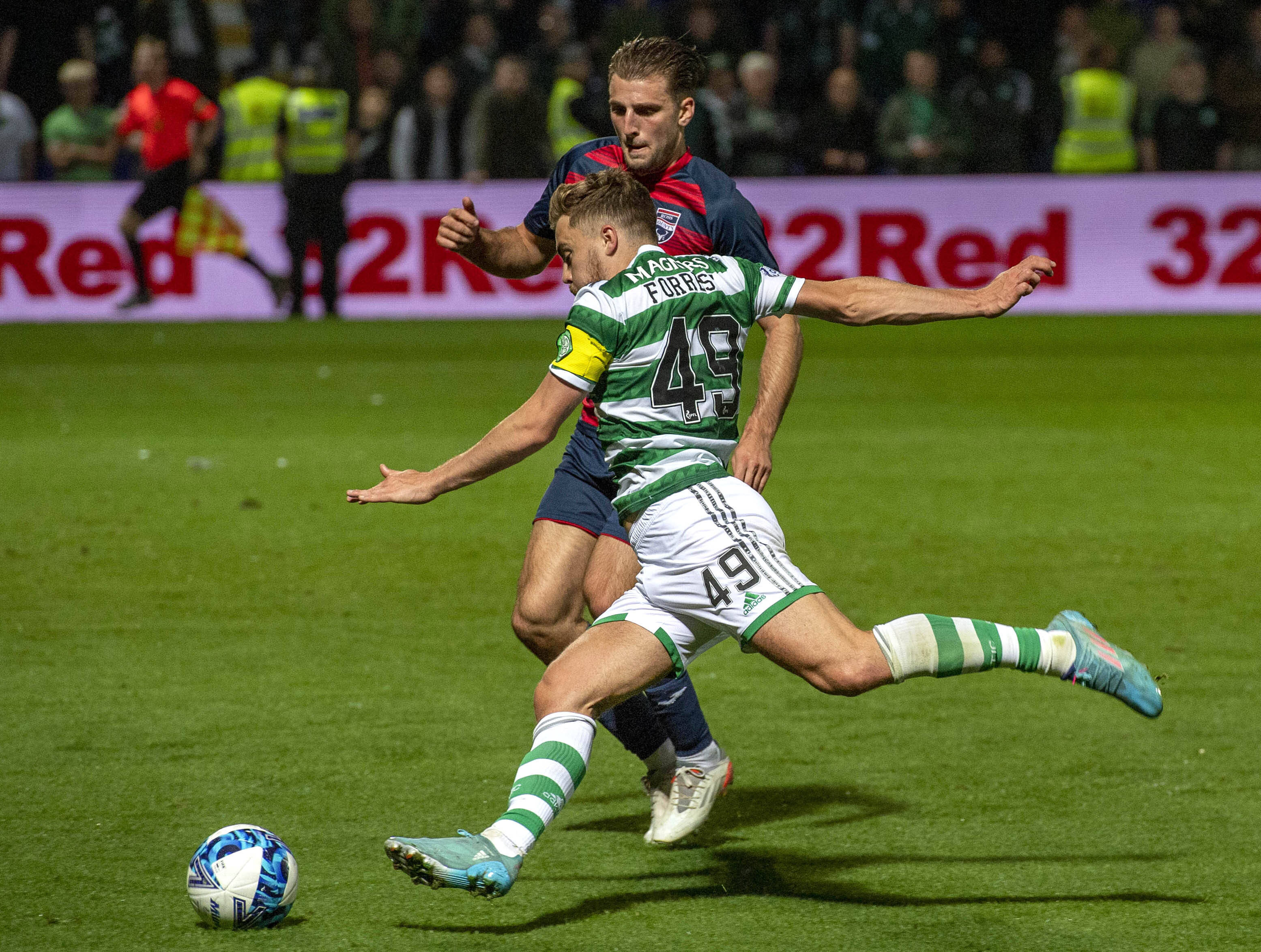 Ross County v Celtic – Premier Sports Cup – Second Round – Global Energy Stadium Celtic s James Forrest scores Celtic’s fourth goal of the game during the Premier Sports Cup second round match at the Global Energy Stadium, Dingwall. Wednesday August 31, 2022. Photo Trevor Martin