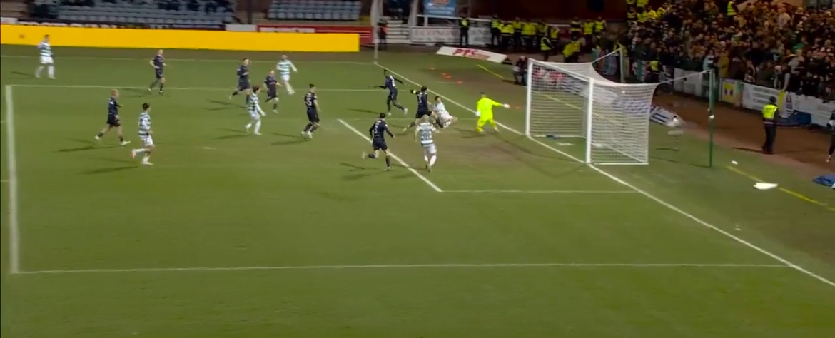 Celtic are ahead against Dundee at Dens Park after Paolo Bernardo scored his first goal for the club. The Benfica loanee made a good run through the middle to get onto a pass from Luis Palma.