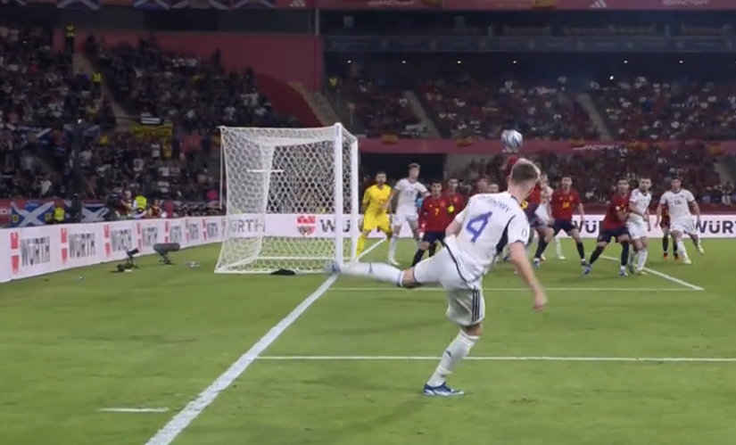 Manchester United’s Scott McTominay thought that he had given Scotland the lead in Seville after an excellent free kick. The midfielder’s cross/shot evaded everyone and nestled in the far corner despite the acutely angle.
