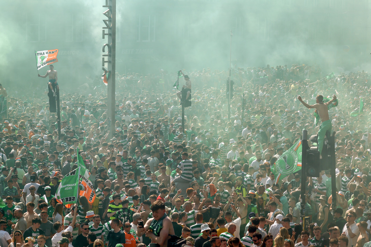 Thousands of Celtic fans converged on the Trongate in Glasgow’s Merchant City after Brendan Rodgers’ side collected the league title following a win over St Mirren. The plan was put in motion after the five star Celts blew Kilmarnock away at Rugby Park during the week.