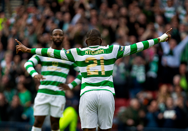 It has taken Celtic just 30 minutes to get the home support celebrating a goal at Paradise again. The Hoops started the game brightly with some good opportunities falling for James Forrest. Hearts slowly grew into the game with a fiercely struck free kick, beaten away by Fraser Forster. However, it was Celtic who took the lead on the half hour mark, when Odsonne Edouard struck a shot at Pereira and the goalkeeper could only parry as far as Ntcham, who calmly volleyed into the empty net for his eighth goal of the season.