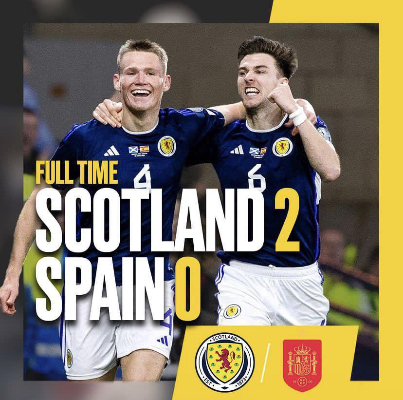 And of course it also means that Scotland’s  2-0 victory over Spain at Hampden Park in the qualifiers turned out to be a result that the English could only dream about!