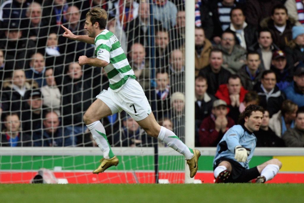 Maciej Zurawski of Celtic celebrates after scoring during the Scottish Premier League match between Rangers and Celtic at Ibrox Stadium on February 12, 2006. (Photo by Jeff J Mitchell/Getty Images)