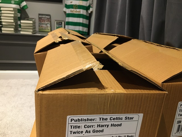 Tommy Callaghan and Matt Corr still smiling as they work their way through signing many hundreds of copies of advance orders all on their way to Celtic Fans around the world now.