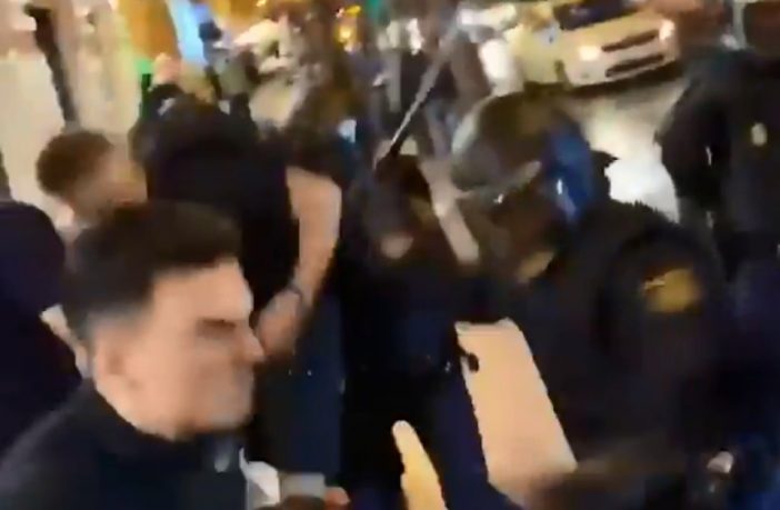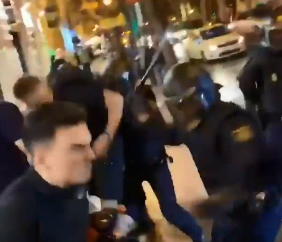 “Shameful Performance by The national Police in the Gran Via D Valencia with the followers of the Glasgow, and with the pedestrians. I was shoved in the hand, shouted in the face without respect and a lot of testosterone when I tried to go home. This is the police that takes care of me? I’ve felt scared.”