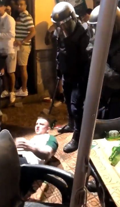 The problem of course with finding a friendly bar is that they rapidly become unfriendly with armed and aggressive Spanish Police arrive and start smashing up the joint, hitting Celtic supporters with their batons and firing rubber bullets at our supporters in these totally unprovoked attacks on our supporters.