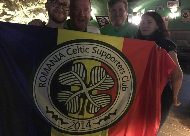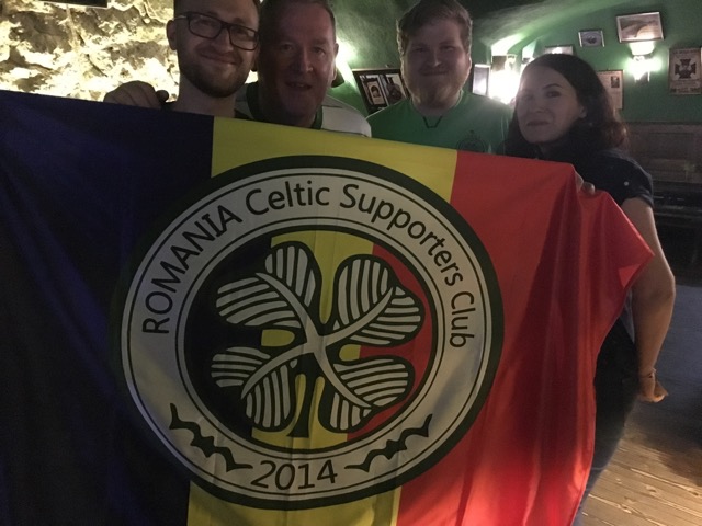 Tony moves on eventually – presumably to rehab – and I find myself standing next to a young guy draped in a Romanian flag with a Celtic crest. I ask him what the story is, as you do. Owen is from Forres but lives and works in Cluj.