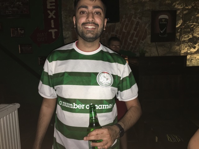 Joining us at one stage is Zeyn from Glasgow. I had noticed him earlier – on the flight presumably – due to the distinctive hoops shirt he was wearing. The badge says ‘Aida Celtic’ and I want to know more.