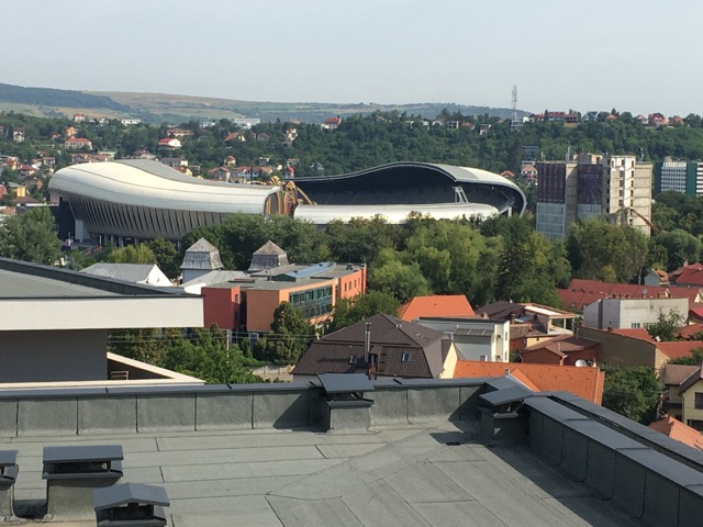 He drops me off at the Hotel Platinia after a slight detour to point out the Cluj Arena and the direction of CFR’s stadium. Just two nights earlier, Robbie Williams had played to 80,000 fans in the Arena, as the headline act in the weekend Untold Festival. The Cluj Arena looks quite spectacular. It is just around the corner from the hotel, whilst the ground where the game will be played tomorrow night, the Dr Constantin Rădulescu, is around a 40-minute walk.