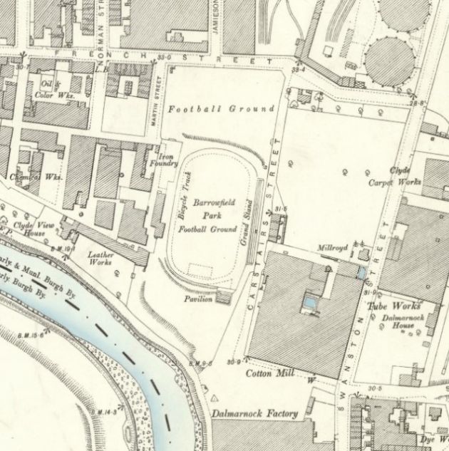 Located right next to the River Clyde – near Dalmarnock train station – the pitch was then home to Clyde, before their switch to Shawfield in 1898. Barrowfield had formerly been the home ground for the now defunct Eastern FC.