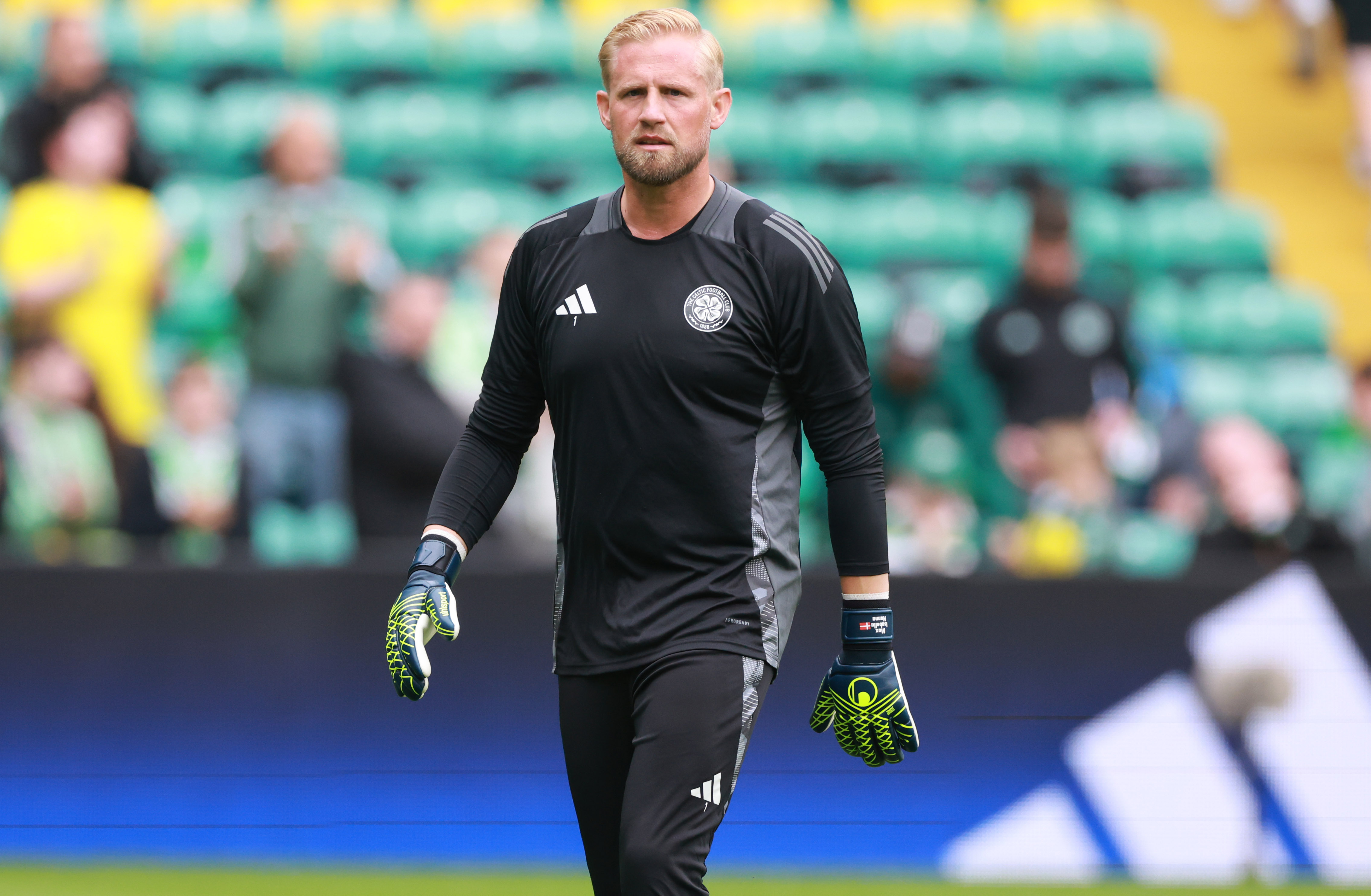 Celtic goalkeeper Kasper Schmeichel pre match warm up before the cinch Premiership match between Celtic FC and Kilmarnock FC at Celtic Park on August 4, 2024 (Photo by Steve Welsh/Getty Images)