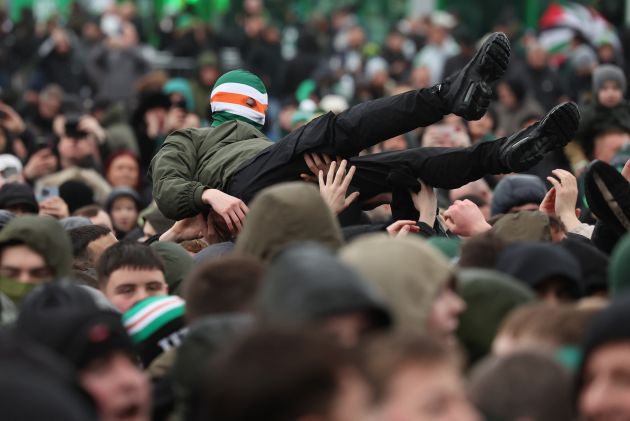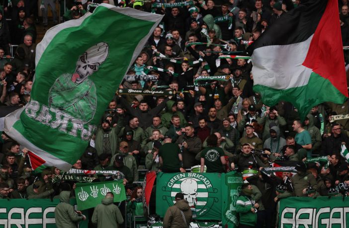 The Green Brigade are seen outside the stadium prior to the Cinch Scottish Premiership match between Celtic FC and Livingston FC at Celtic Park Stadium on December 23, 2023. (Photo by Ian MacNicol/Getty Images)