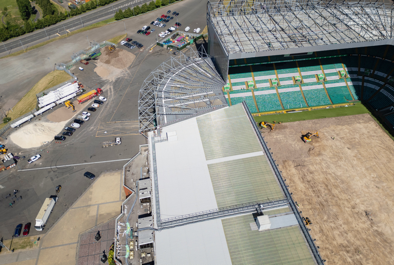 The Celtic Star posted a video and some photos of Celtic Park from the sky on Sunday that showed the work that’s begun to create a new playing surface at Celtic Park for next season. You can watch the video below which was filmed by Celtic fan media photographer Vagelis Georgariou.