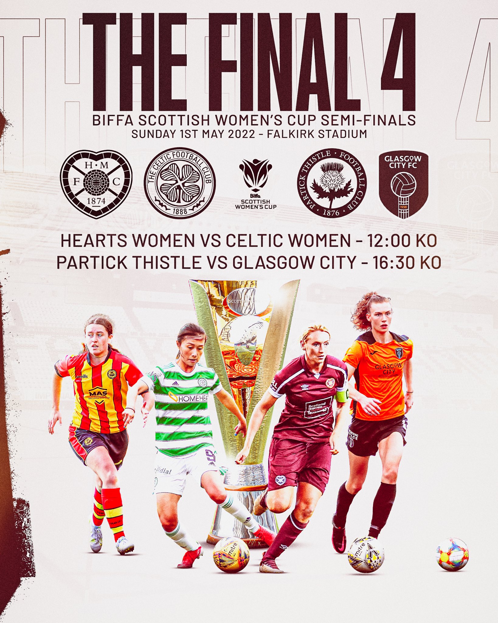 Both semi-finals are being held on Sunday at Falkirk Stadium and somewhat annoyingly The Celtic v Hearts game kicks off at 12 noon, just as Celtic take on Old Firm Fc at Celtic Park where a win will all but guarantee the Scottish Premiership trophy will be coming back to Paradise. With this being a Bank Holiday weekend surely these Women’s Scottish Cup matches could have been played on Monday, or at least The Celtic v Hearts game?