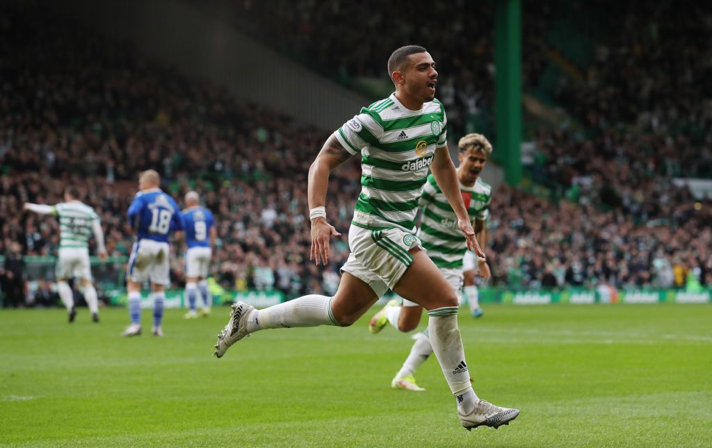 Giorgos Giakoumakis of Celtic celebrates after scoring the opening goal during the Cinch Scottish Premiership match between Celtic FC and St. Johnstone FC at on October 23, 2021 in Glasgow, Scotland. (Photo by Ian MacNicol/Getty Images)