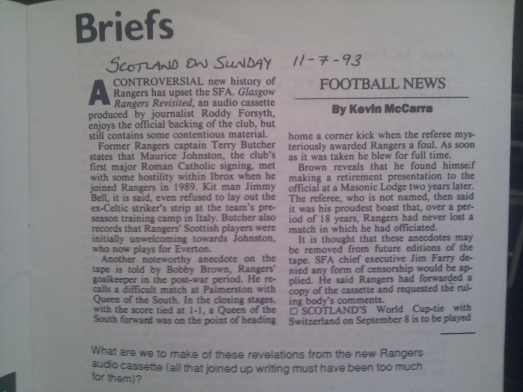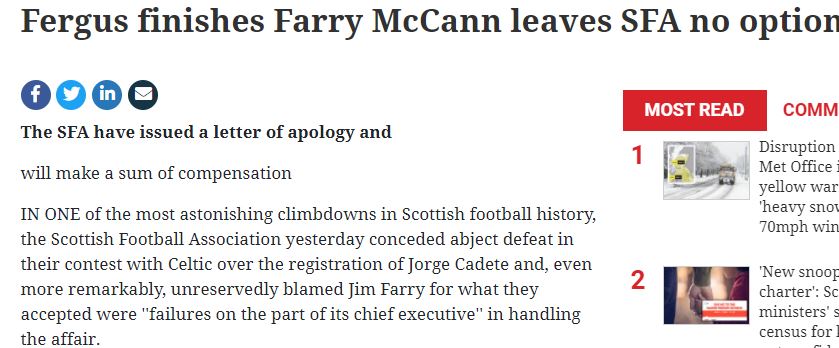 If we cast our minds back a little further, Jim Farry was proven to have deliberately and illegally blocked Jorge Cadete’s registration. This had a potentially huge bearing on the title race that season. Fergus McCann took Farry, Scottish Football Association Chief Executive, to court and the latter was sacked following the verdict.